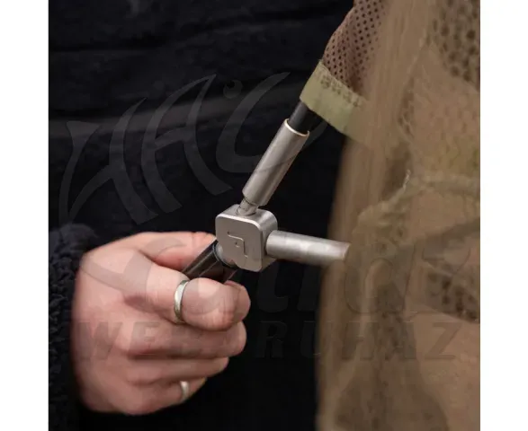 Fém nyélvég tüske: A nyél alján található speciális fém végzáró lehetővé teszi, hogy a merítőt leszúrjuk a talajba, így biztosan nem sodorja el a szél, amíg a kapásra várunk.