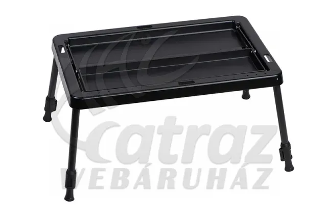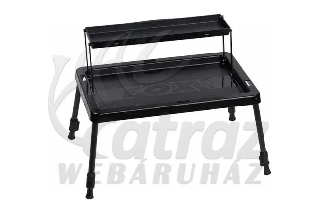 A Fox Compact 2 Tier Bivvy Table választ ad a sátorban uralkodó káoszra. Ez az asztal nem csupán egy sík felület: a második szint bevezetésével vertikálisan növeli a tárolókapacitást, így az alsó szinten kényelmesen szerelhetsz, míg a felső, keskenyebb polcon biztonságban tudhatod az értékesebb tárgyaidat, például a telefonodat vagy a kapásjelző vevőjét.