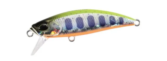 A Duo Spearhead Ryuki 46S az a wobbler, amely ott is stabil marad, ahol más csalikat már kiforgat a víz. A 4,6 cm-es testbe sűrített 5 grammos súly rendkívüli aerodinamikát kölcsönöz neki: úgy repül, mint egy nyílvessző, és azonnal süllyedni kezd, amint vizet ér. A Chart Back Yamame OB színkód a természetes pisztrángmintát (Yamame) kombinálja egy élénksárga (Chart) háttal és narancssárga hasi résszel (OB - Orange Belly), így a halak számára minden szögből és fényviszonyban jól látható marad.